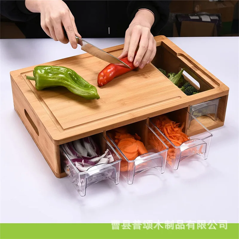Walnut Solid Wood Multi-Functional Cutting Board Set with Handle Kitchen Storage Drawer Type for Chopping and Bread